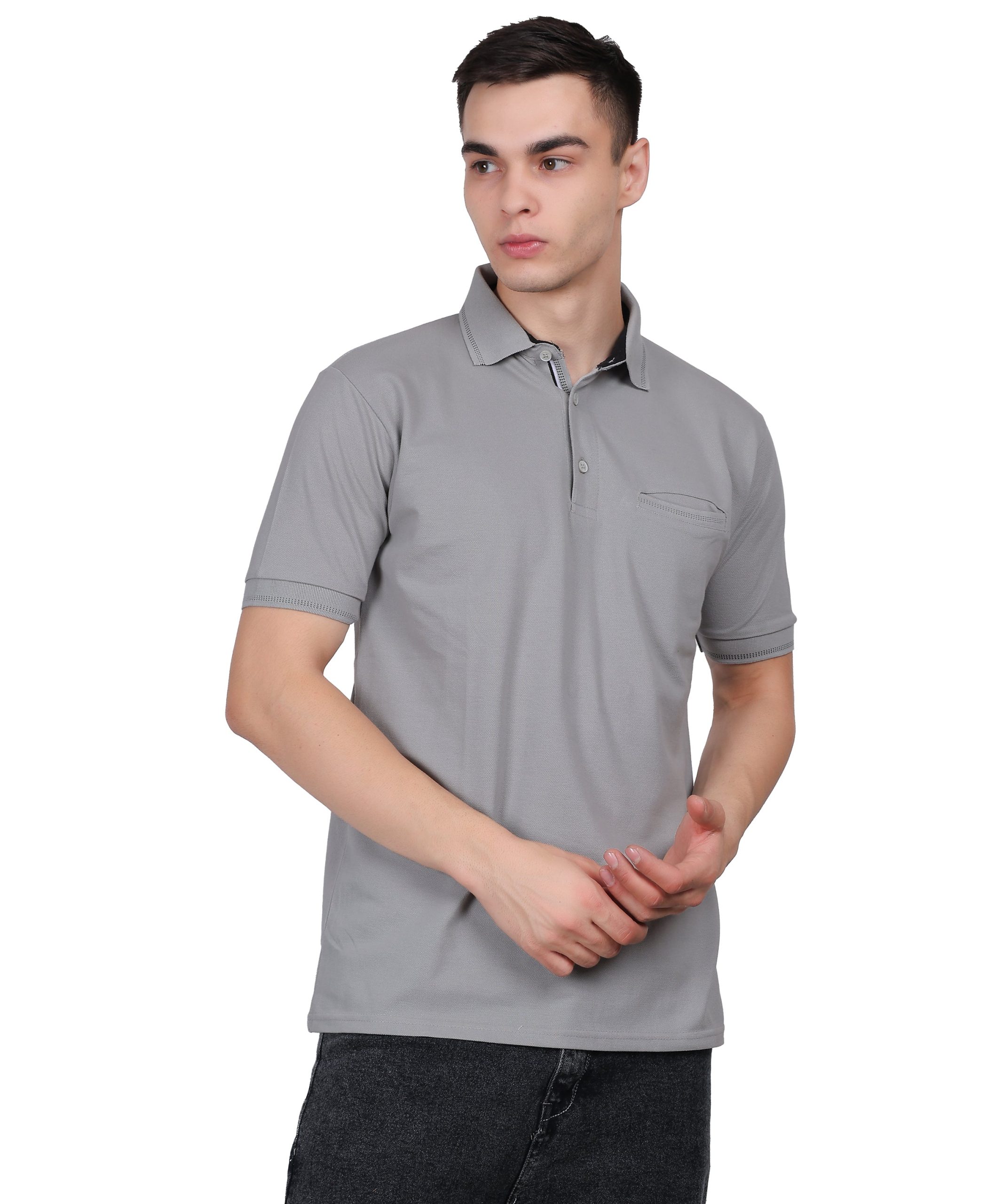 Polo Tshirt for Men with Pocket in Matty Fabric Light Grey